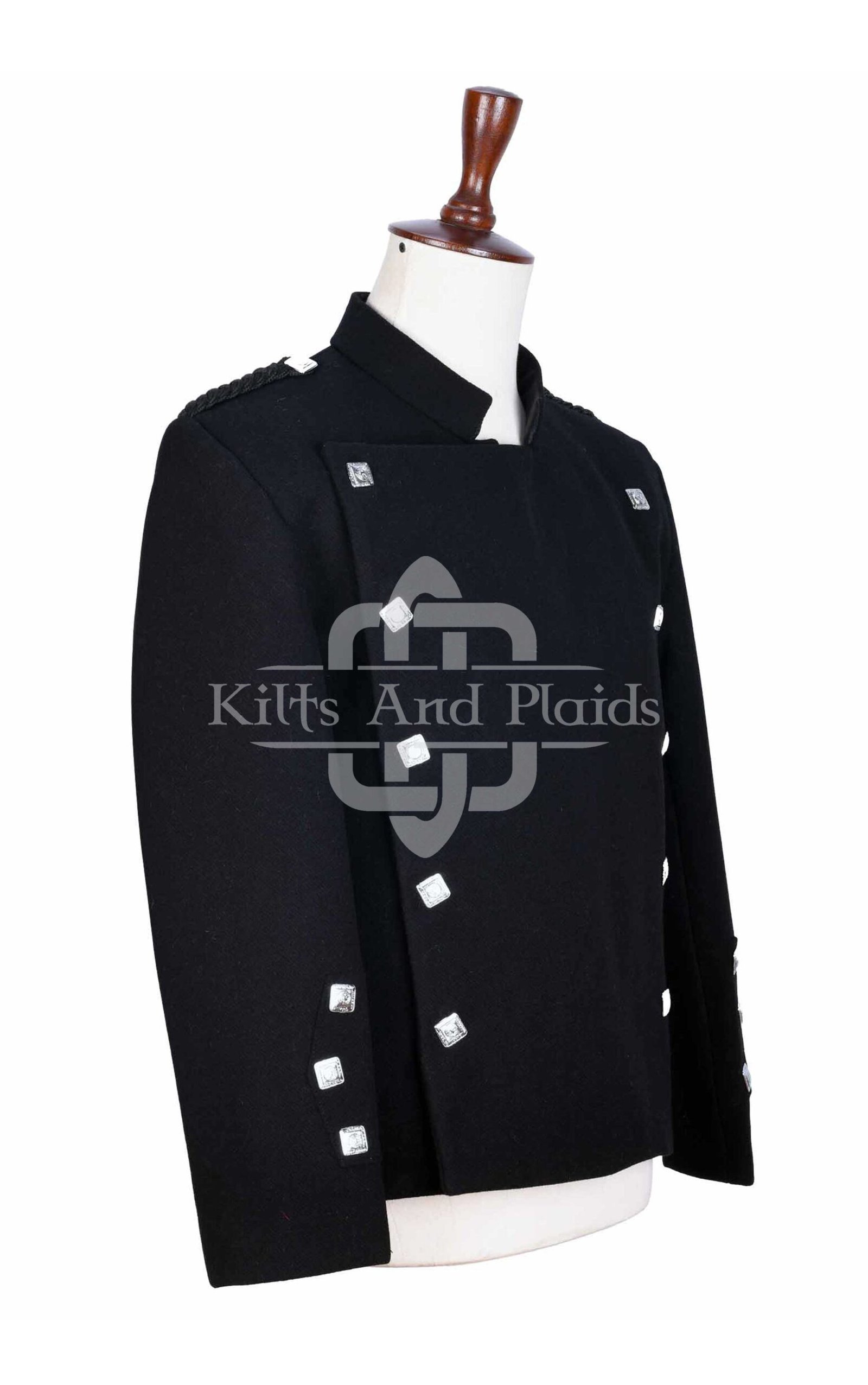 In addition, its versatility shines when accessorized: silver kilt pins complement the buttons, while a sgian-dubh adds ceremonial flair. Whether donned by a groom or a piper, it commands attention with timeless sophistication. Therefore, it remains the gold standard for formal Highland attire worldwide.