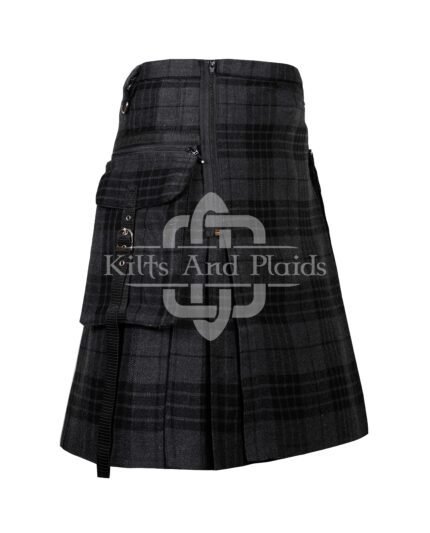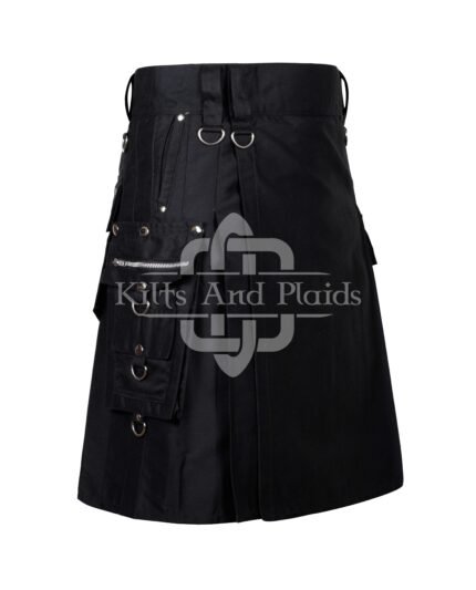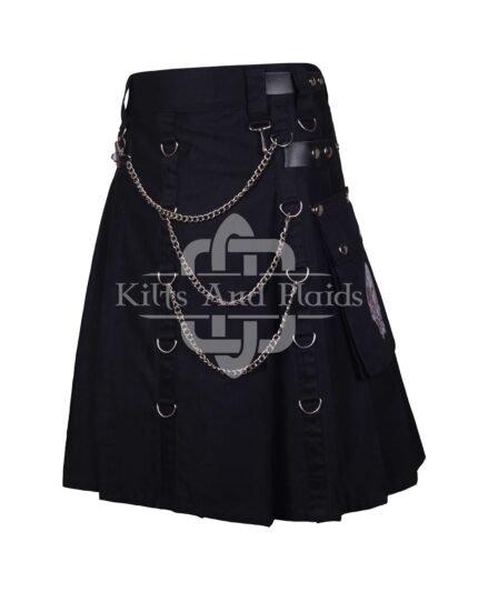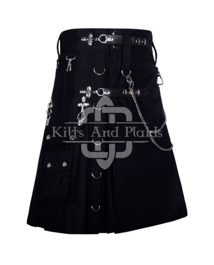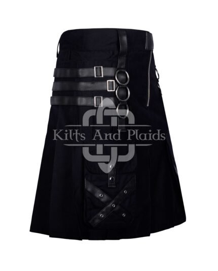 Black Utility Gothic Kilt with Leather Straps & Chains