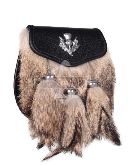 Coyote Fur Black Leather Sporran Bumble Bee Flap Sporran