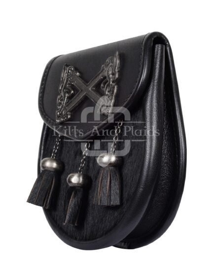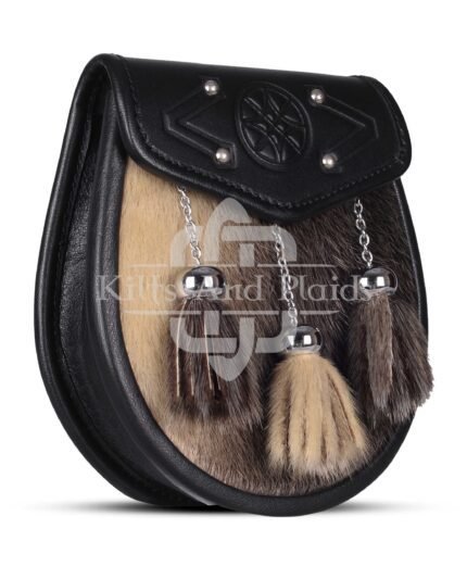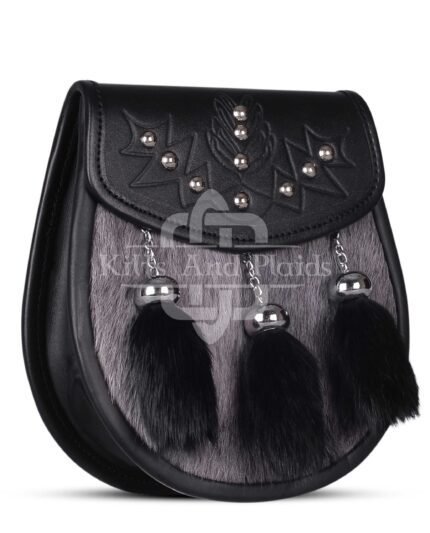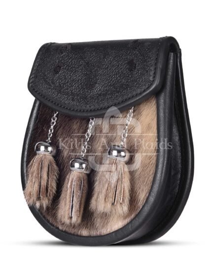 Embossed Black Leather Seal Fur Semi Dress Sporran