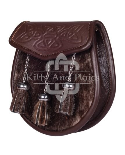 Embossed Brown Leather Seal Fur Semi Dress Sporran