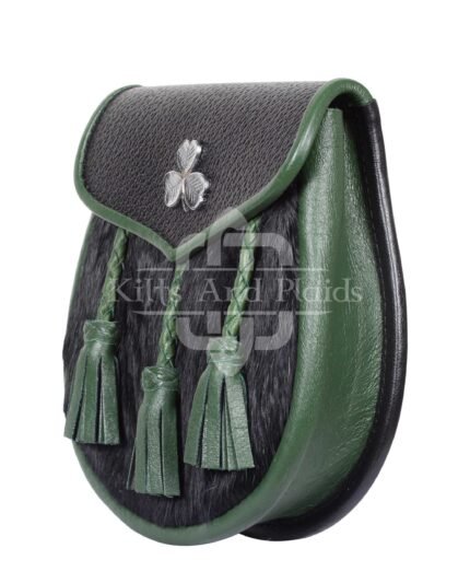 Shamrock Emblem Black Rabbit Fur Semi Dress Sporran