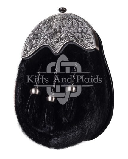 Nickle Brushed Thistle Black Rabbit Fur Full Dress Sporran