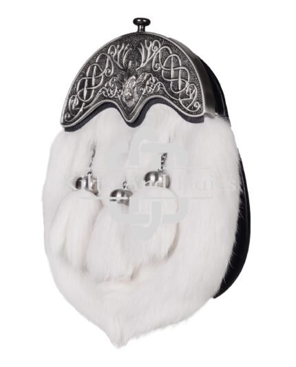 Nickle Brushed Stag Head White Rabbit Fur Full Dress Sporran