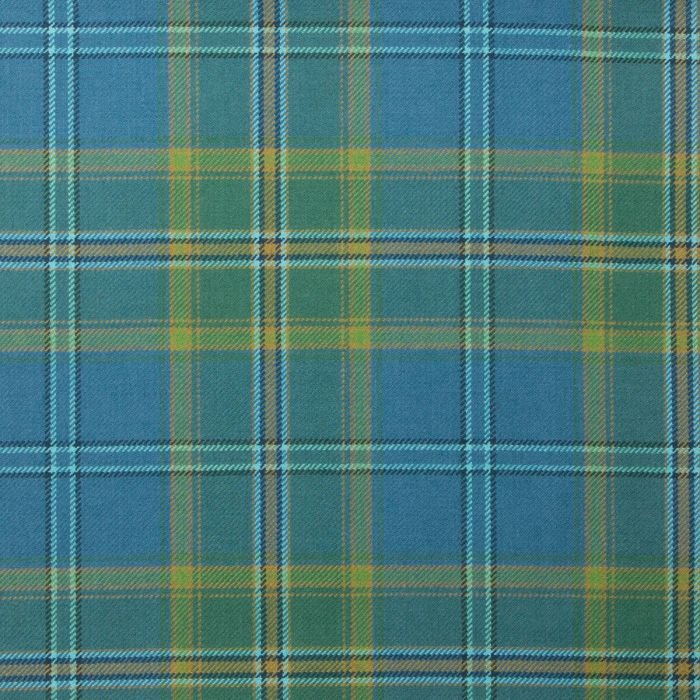All Ireland Blue Irish Tartan Fabric is a muted blue based tartan with shades of green and yellow. Woven using 100% Pure New Acrylic Wool this tartan is available for made to measure products, accessories, soft furnishings and craft projects. Made here in our mill in Selkirk, Scotland.