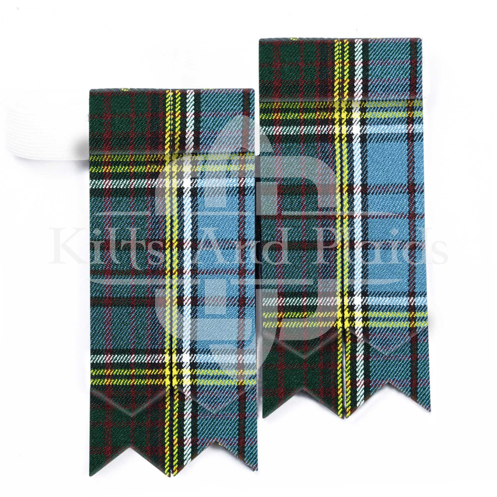 Complete your Highland dress with our Anderson Tartan Flashes, crafted for both authenticity and durability. These flashes add a sharp finishing touch to your kilt hose, securing them in place while showcasing classic Scottish pride.