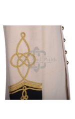 We apply gold braid on chest, collar, cuffs, and epaulettes