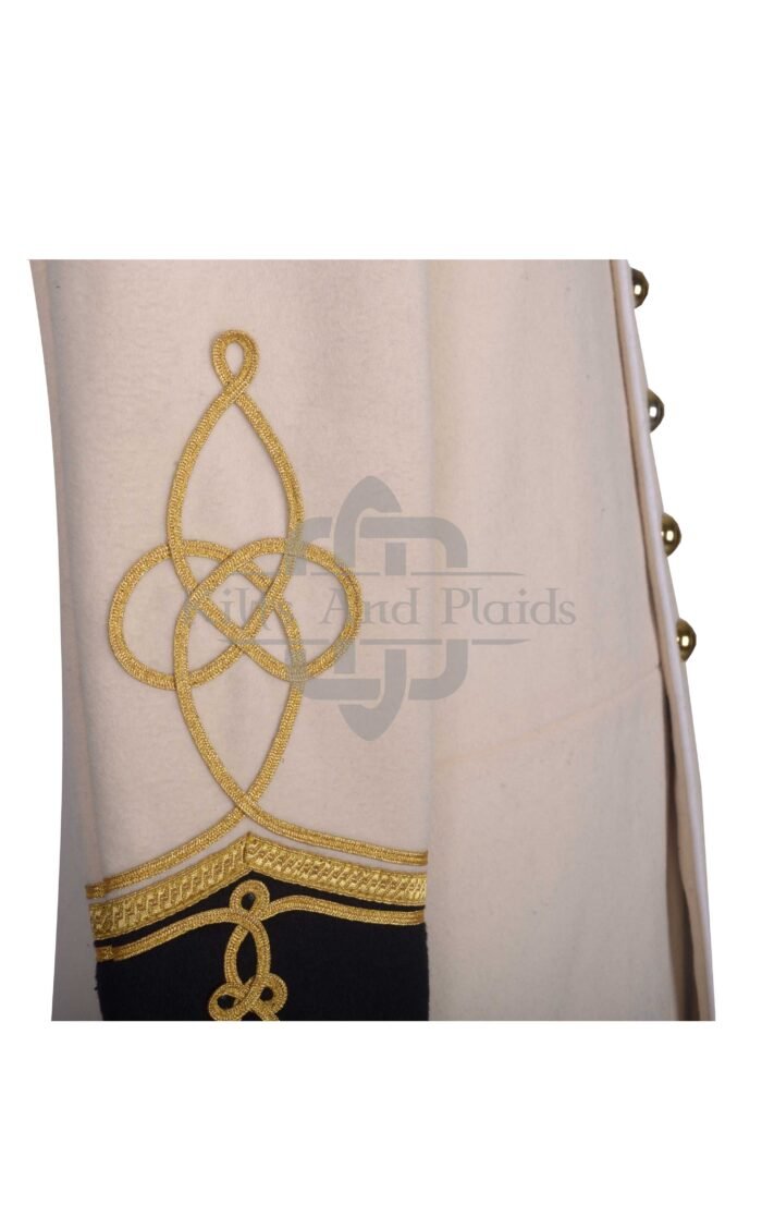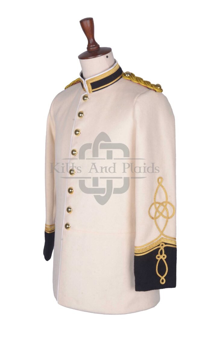 We add traditional brass or gold-tone buttons, detailed with period motifs, to enhance the tunic’s historic appeal. Inside, we fully line the jacket for all-day comfort and include internal pockets for practicality during events or performances.