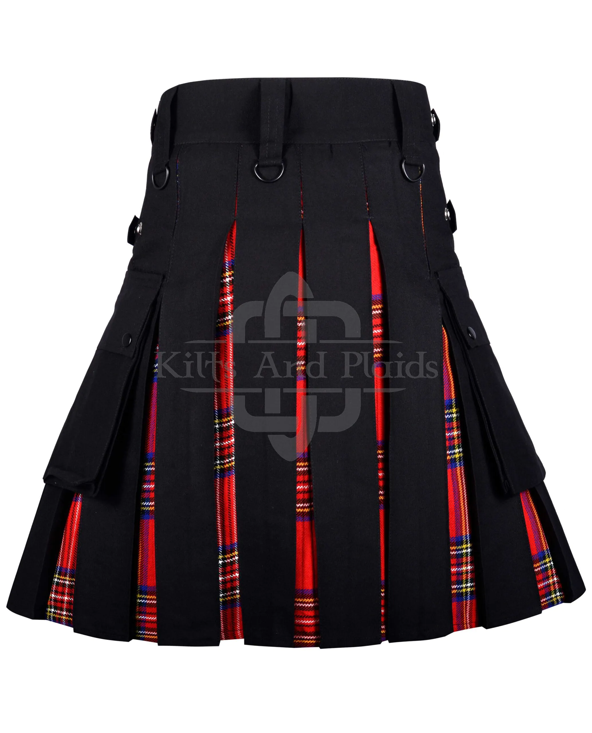 The Black Cotton Royal Stewart Hybrid Kilt is available in multiple sizes, with customizable options to suit your needs. Experience the perfect combination of Scottish tradition, modern design, and practicality.