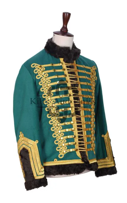 Scottish Black Wool Gold Braided Military Hussar Jacket