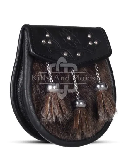 Brown Leather Special Embossed Seal Fur Sporran