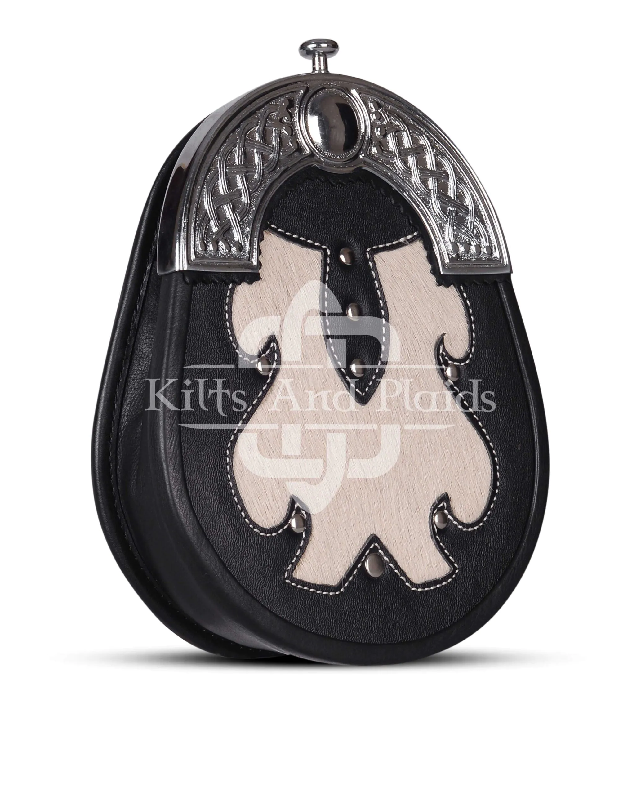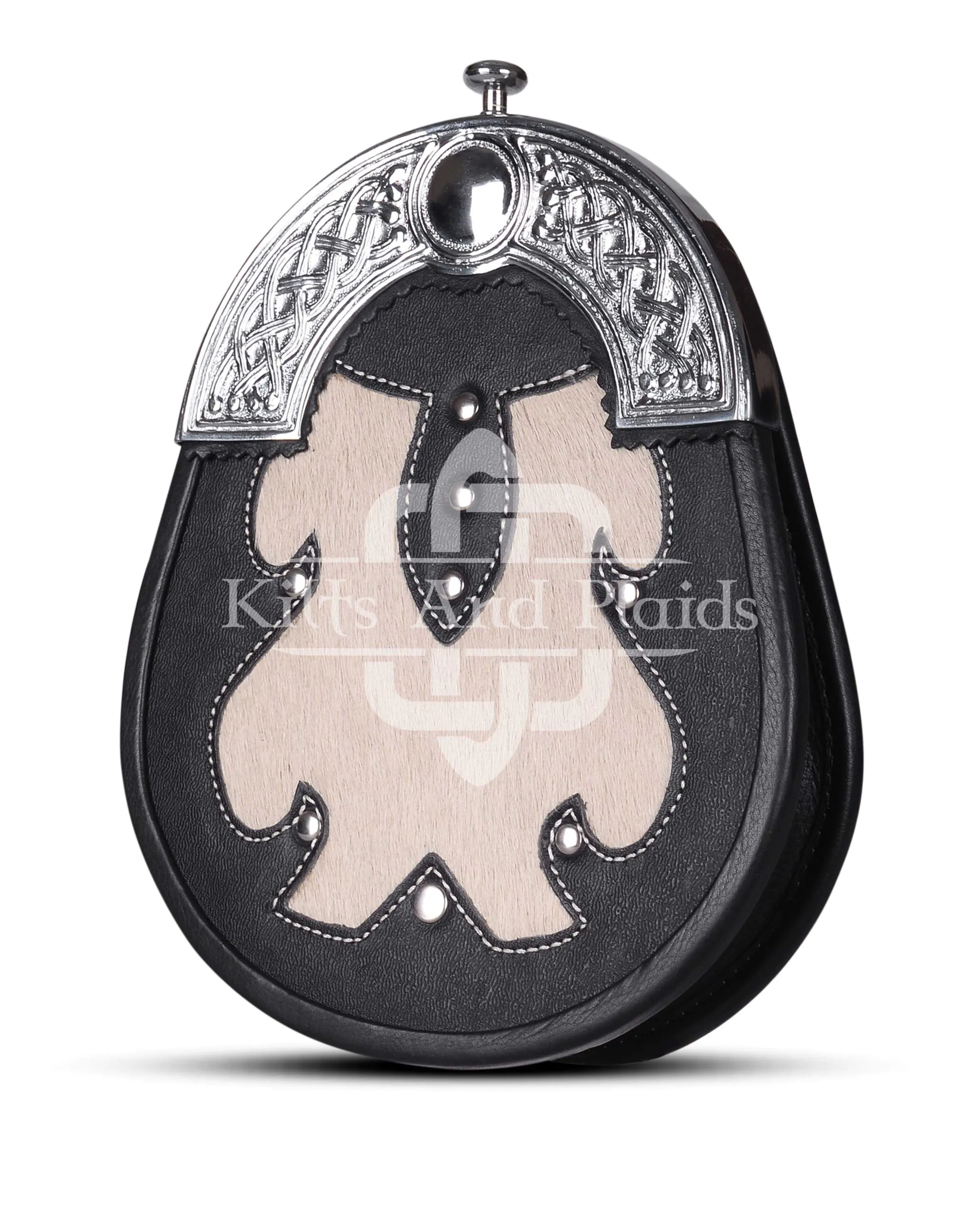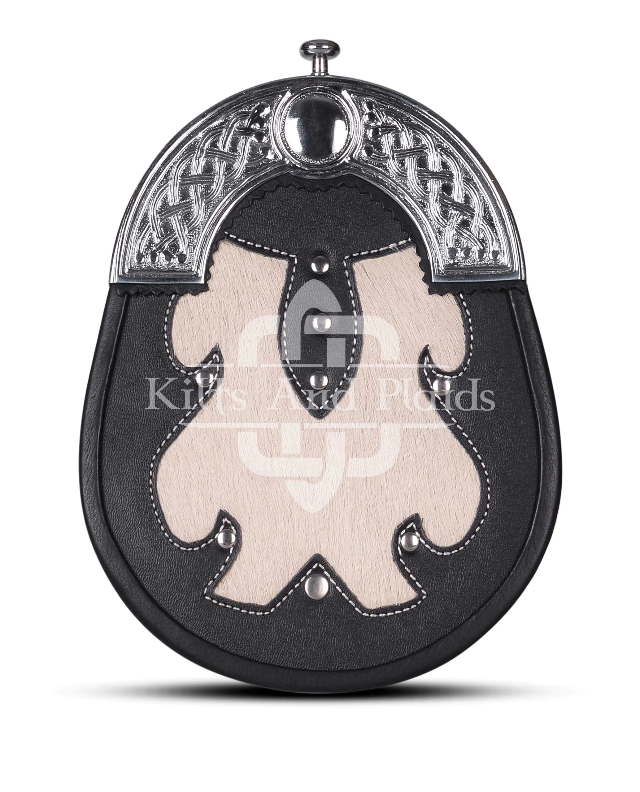 Complete your kilt outfit with the bold, functional look of the Black Leather White Fur Hunting Sporran. Designed for durability and traditional appeal, this sporran adds a touch of rugged charm to any Highland ensemble while offering practical storage for your essentials.