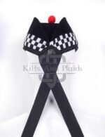 This Glengarry cap has a traditional rounded shape that fits snugly on the head, offering both comfort and heritage-inspired style. A black pom-pom (toorie) sits at the top, while long black ribbon tails hang from the back, completing the signature Highland look. The unique black-and-white diced pattern stands out beautifully against the solid wool base, delivering a sharp and distinguished appearance.