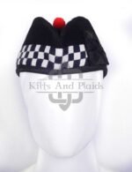 Whether you pair it with a full kilt ensemble or wear it as a statement piece, the Black Wool Black & White Diced Glengarry Hat delivers premium quality, comfort, and timeless Highland style.