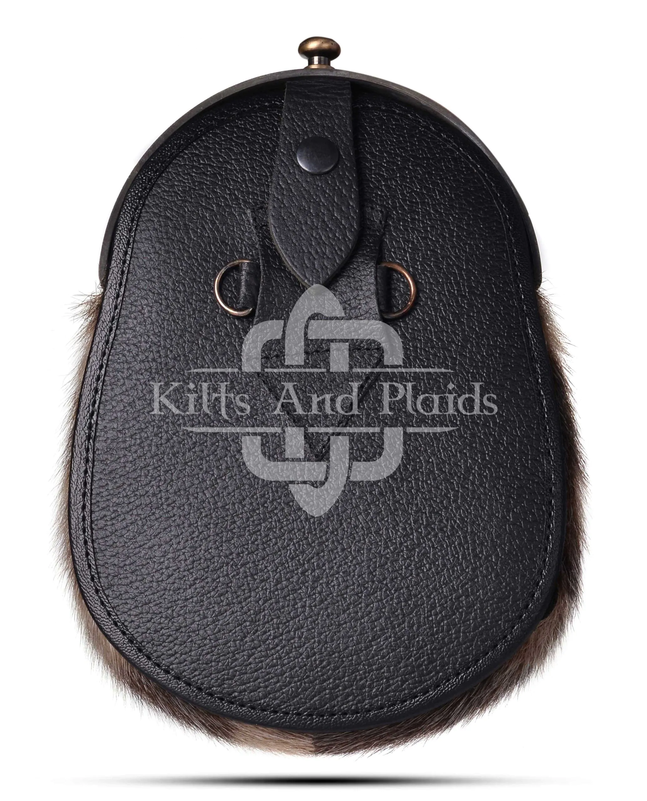 Black Leather Brown Rabbit Fur Semi Dress Sporran
