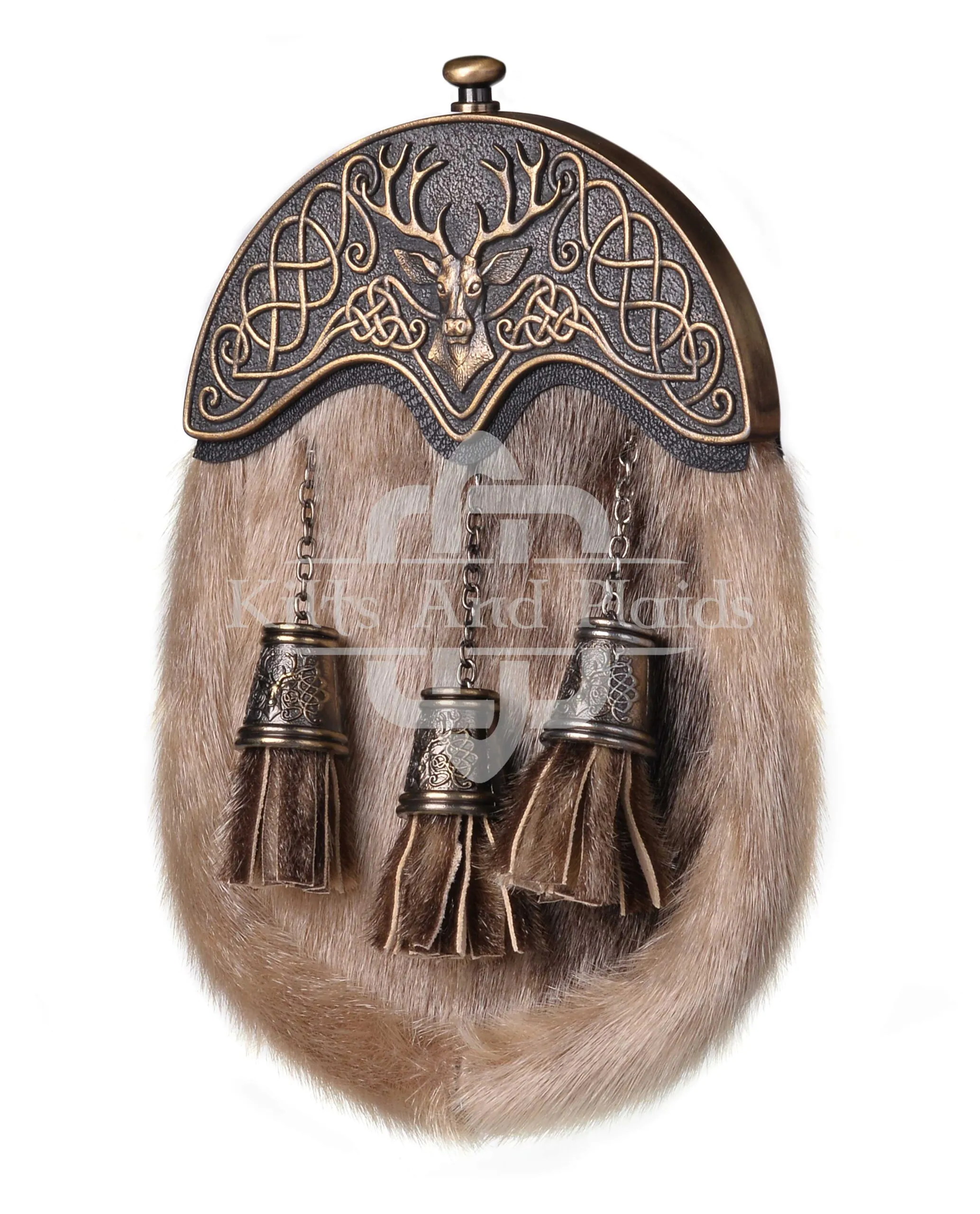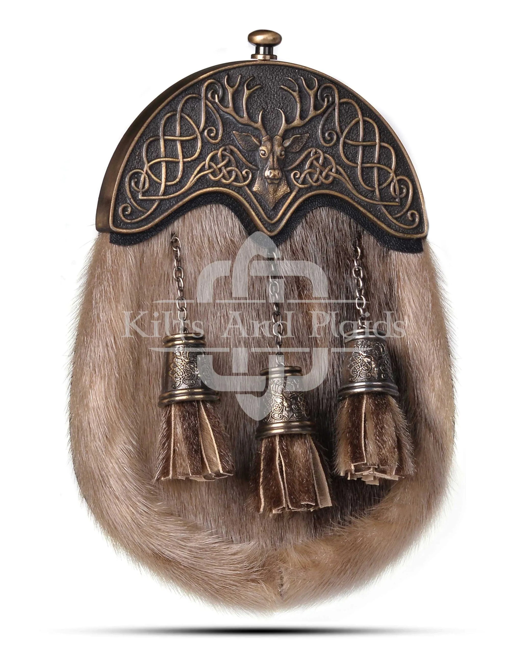 Brass Stag Head Brown Rabbit Fur Sporran
