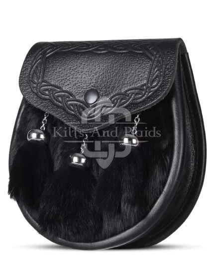 Black Leather Bovine Fur Cross Tassels Semi Dress Sporran