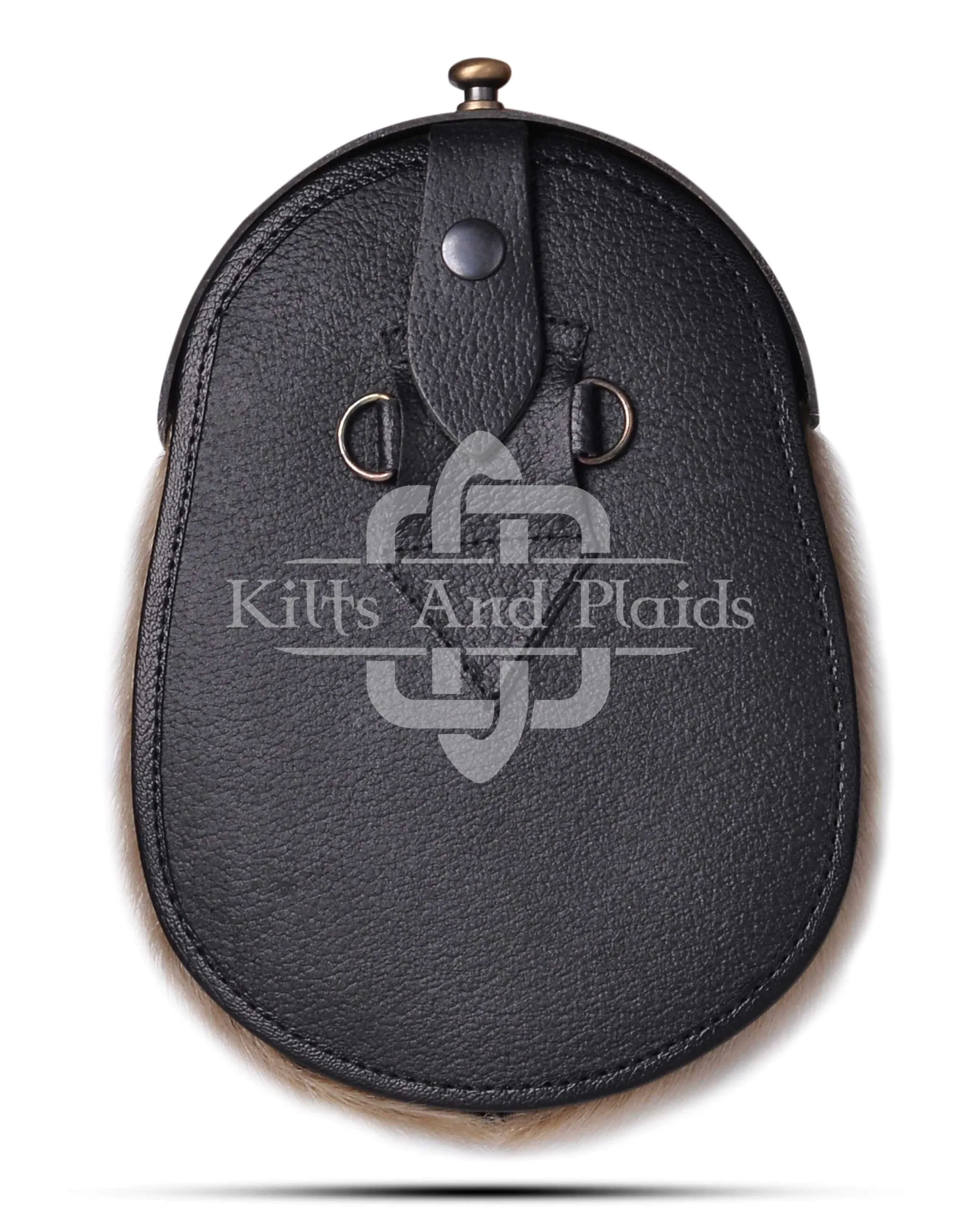 Three matching seal fur tassels hang from braided leather cords, maintaining classic Highland styling. The spacious interior provides room for essentials such as your phone, wallet, or keys. A strong snap closure keeps your items secure without compromising accessibility.