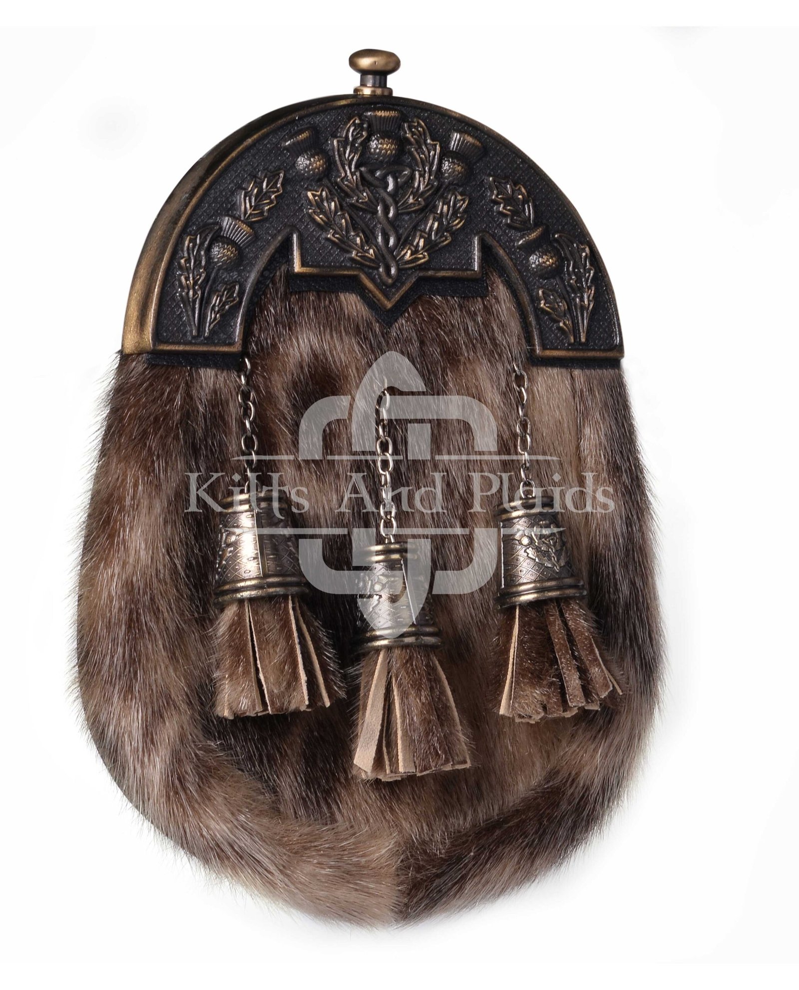 Celebrate Scottish tradition with the Brass Thistle Seal Fur Sporran — a bold accessory that honors national pride while delivering timeless style and craftsmanship. Ideal for formal wear, Highland gatherings, or ceremonial events, this sporran completes your kilt outfit with authentic detail and refined strength.