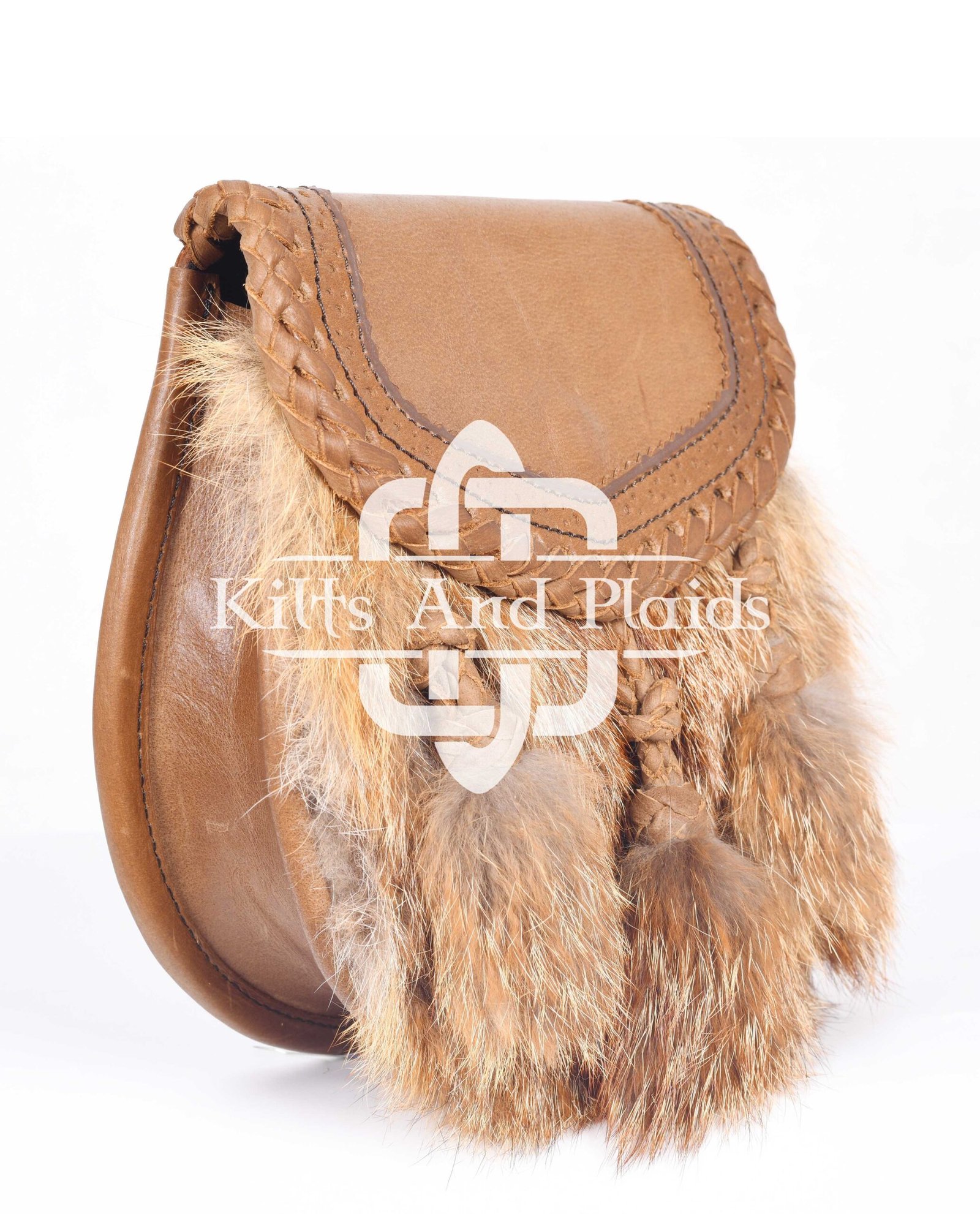The rich brown leather body pairs beautifully with the soft real fur front, creating a sophisticated contrast that enhances any Highland outfit. Its traditional Sami dress design adds a touch of heritage, making it a standout accessory for weddings, Highland games, and formal gatherings. Every stitch and seam reflects skilled workmanship and a deep respect for Scottish culture.