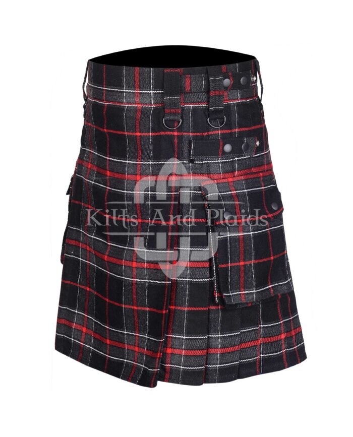 Engineered for real-world use, this utility kilt features adjustable leather straps with rust-proof metal buckles for a secure, customizable fit. Spacious detachable cargo pockets on each side offer practical storage for tools, gadgets, or everyday essentials. Wide belt loops provide additional versatility for attaching gear or accessories, making this kilt as functional as it is stylish.