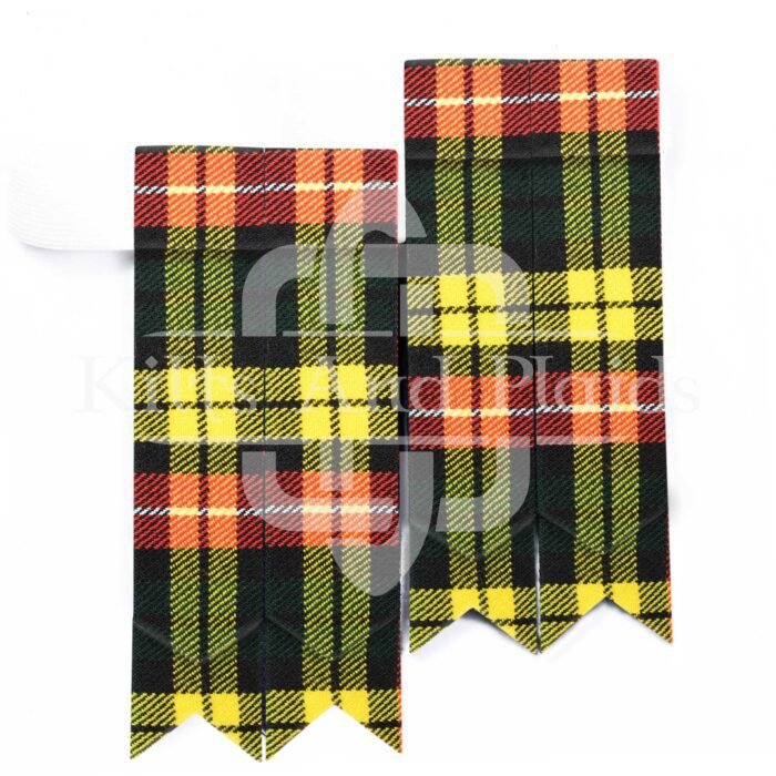 Complete your Highland dress with our Buchanan Tartan Flashes, crafted for both authenticity and durability. These flashes add a sharp finishing touch to your kilt hose, securing them in place while showcasing classic Scottish pride.