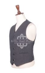We craft this waistcoat from high-quality charcoal gray tweed wool, offering a refined texture and versatile color that complements virtually any kilt or tartan. The classic herringbone weave adds subtle depth and structure, making this waistcoat a stylish staple in your Highland wardrobe.