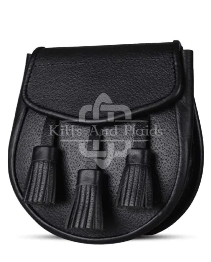 We use genuine black leather to form the back and sides, ensuring the sporran remains durable and maintains its shape through years of use. A polished chrome cantle engraved with Celtic knotwork crowns the design, adding a sacred and traditional element that ties perfectly with clerical dress. Below the cantle, three hand-tied leather tassels complete the classic Highland look.