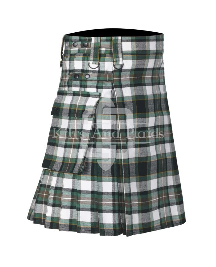 The Drummond of Perth Dress Green Tartan Utility Kilt blends rich Scottish heritage with modern functionality, giving you a kilt that performs as well as it looks.