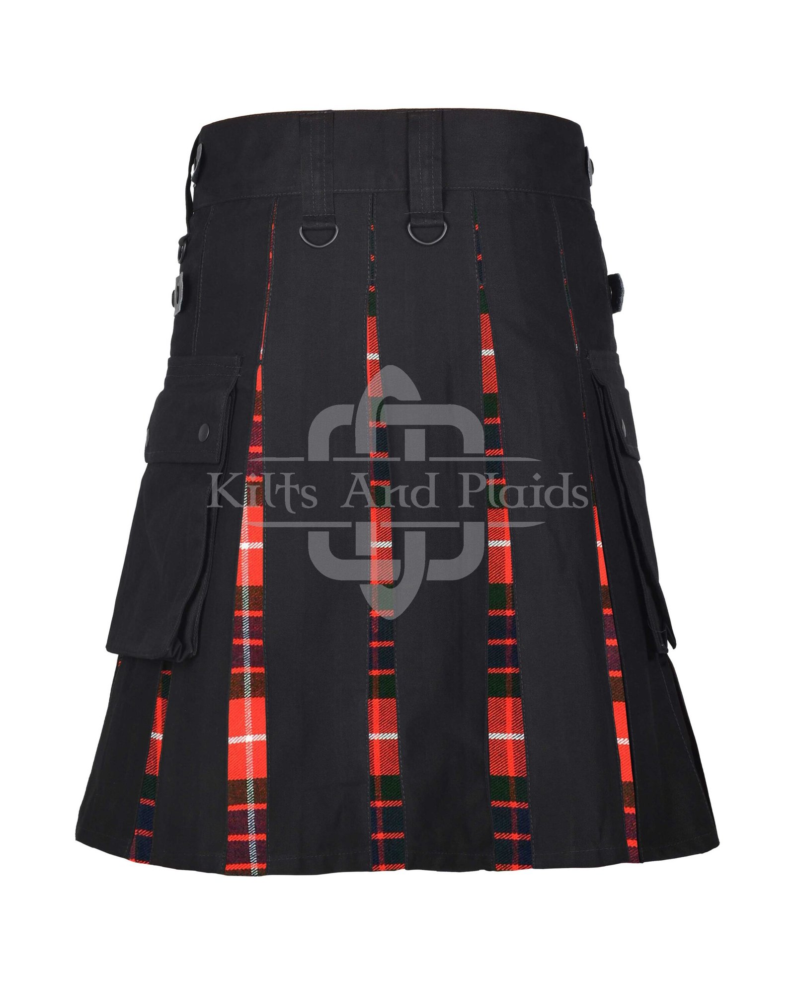 Perfect for outdoor work, festivals, or everyday use, it features deep red and black Fraser tartan pleats at the back. The contrast adds a striking traditional touch to the solid front panel. This fusion of classic and modern gives you a versatile, standout look.