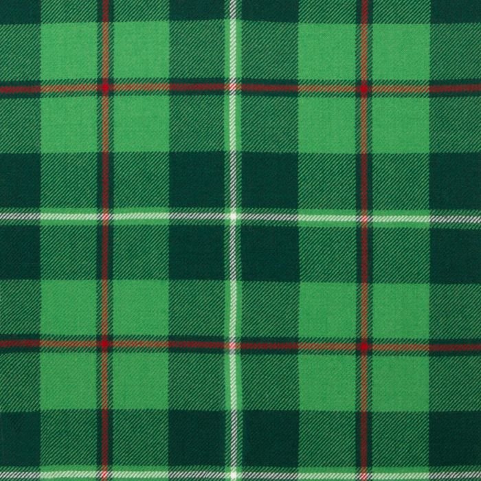 Galloway Hunting Modern Tartan Fabric is a vibrant green-based tartan with a white and red overcheck. Woven in 100% Pure New Acrylic Wool this tartan is available for accessories, soft furnishings and craft projects. Made here at our mill in Selkirk, Scotland.