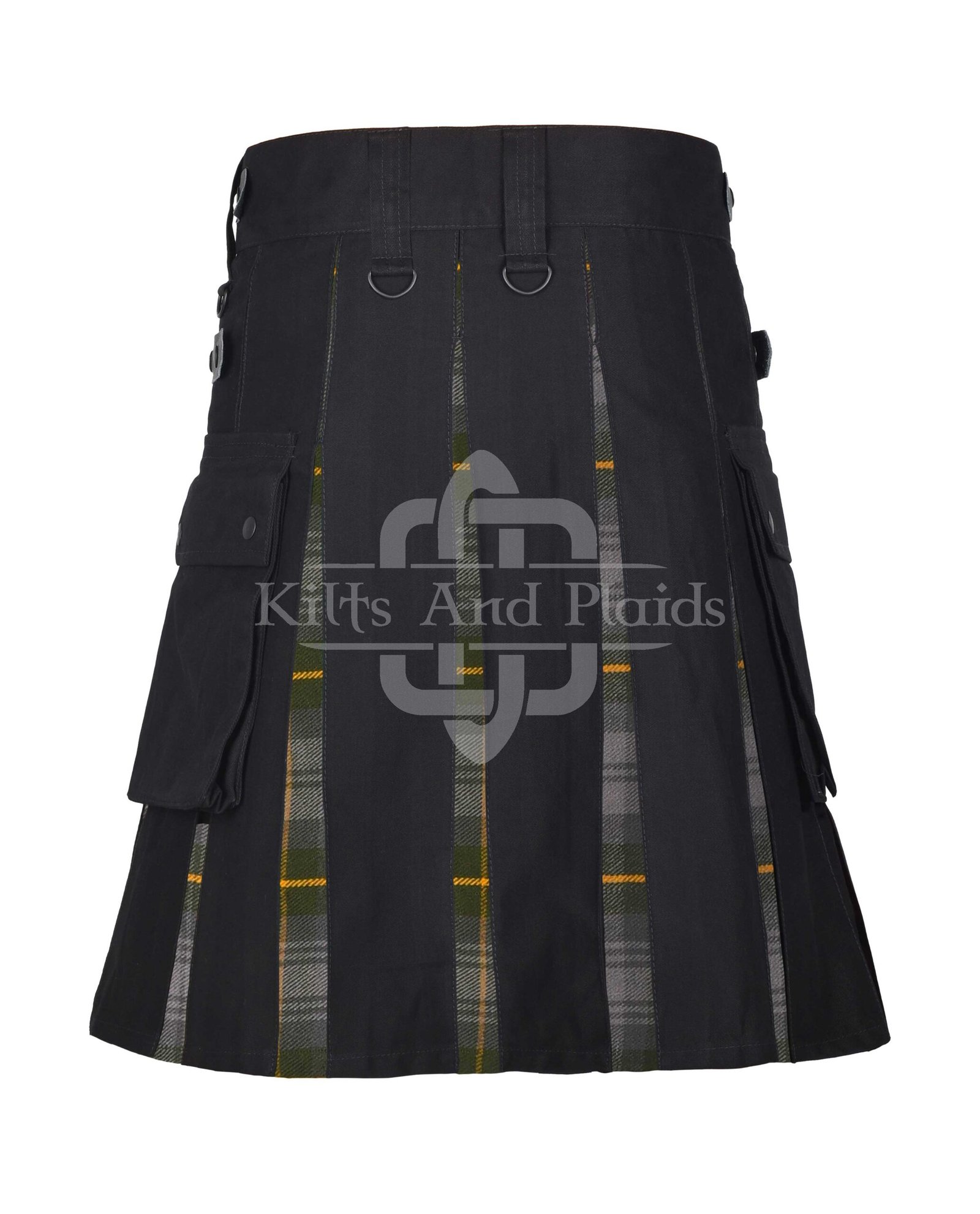 Crafted from heavy-duty black cotton, the body of the kilt delivers unmatched durability while allowing freedom of movement for everyday tasks or special events. The pleats showcase the iconic Gordon Weathered tartan, known for its earthy blend of muted greens, browns, and blues—an elegant nod to Scottish heritage. Whether you’re attending a Highland festival, working outdoors, or making a statement in the street, this kilt commands attention while offering complete comfort.