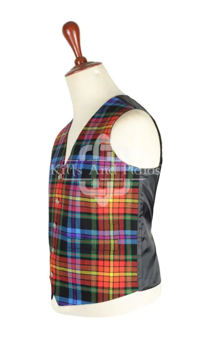 The vest features a tailored, sleeveless design that creates a sharp, structured fit. Choose from a classic button front or modern zip closure to match your personal style. You can also customize the Granite Tartan Vest with optional metal buttons, chains, or contrast stitching for a personalized edge.