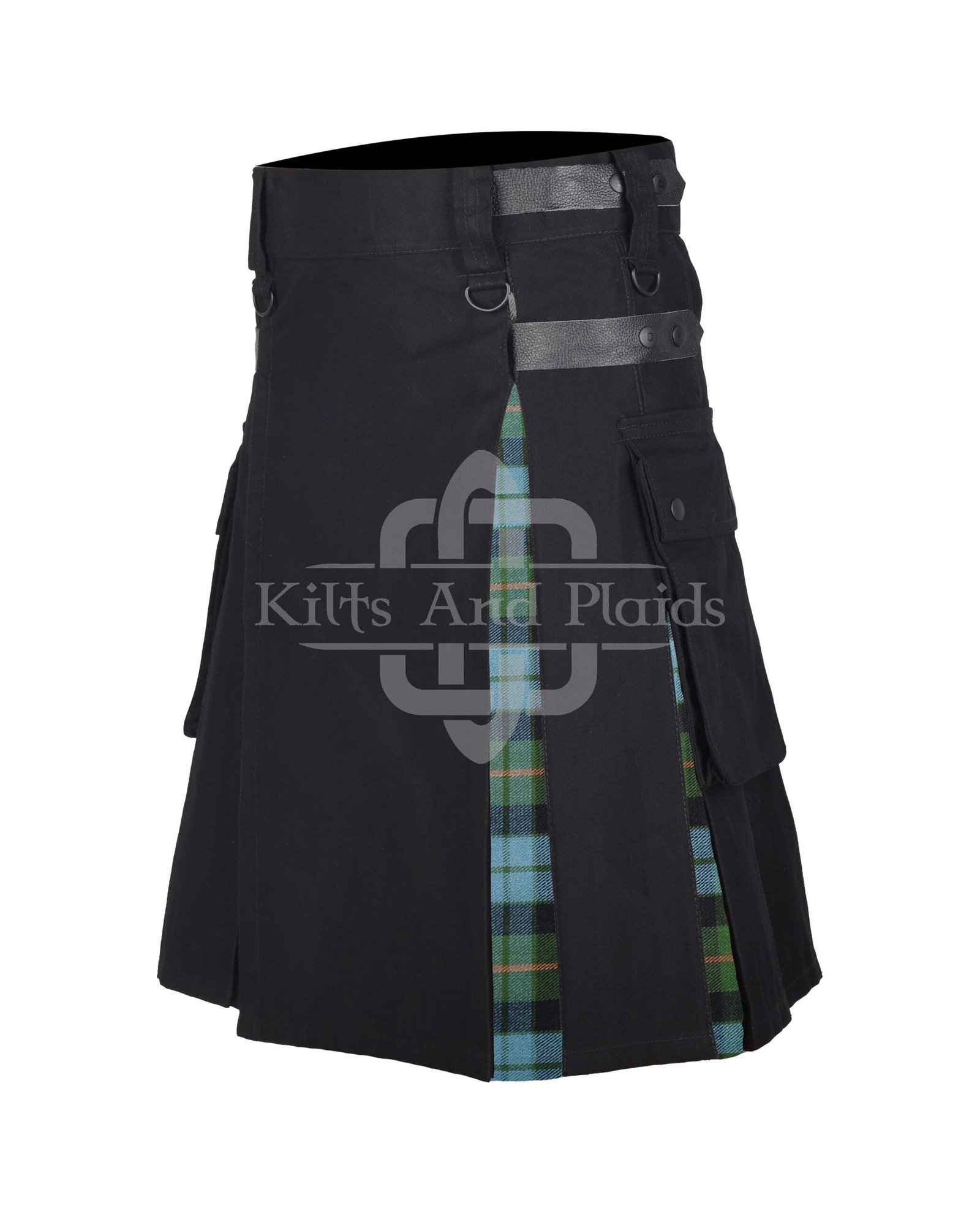 The kilt’s fit is fully adjustable thanks to real leather side straps. You can tighten or loosen them to achieve the perfect comfort level. Rust-free metal hardware adds durability and a modern touch to the design.