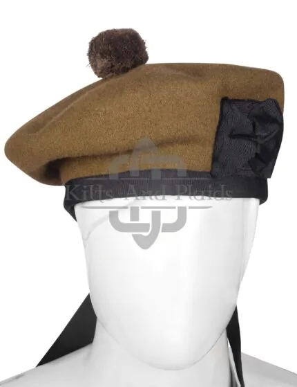 Features black wool toorie (pom-pom) on top