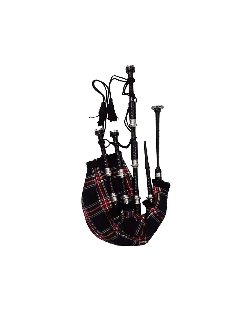 The set includes a strong synthetic bag for reliable airflow, a traditional tartan cover, and matching cords for a complete Highland look. The chanter and drones produce a deep, resonant tone that reflects centuries of Scottish musical heritage, making this bagpipe ideal for parades, ceremonies, and performances.