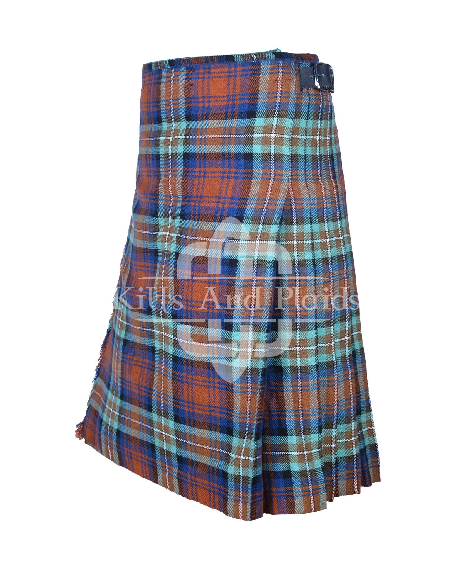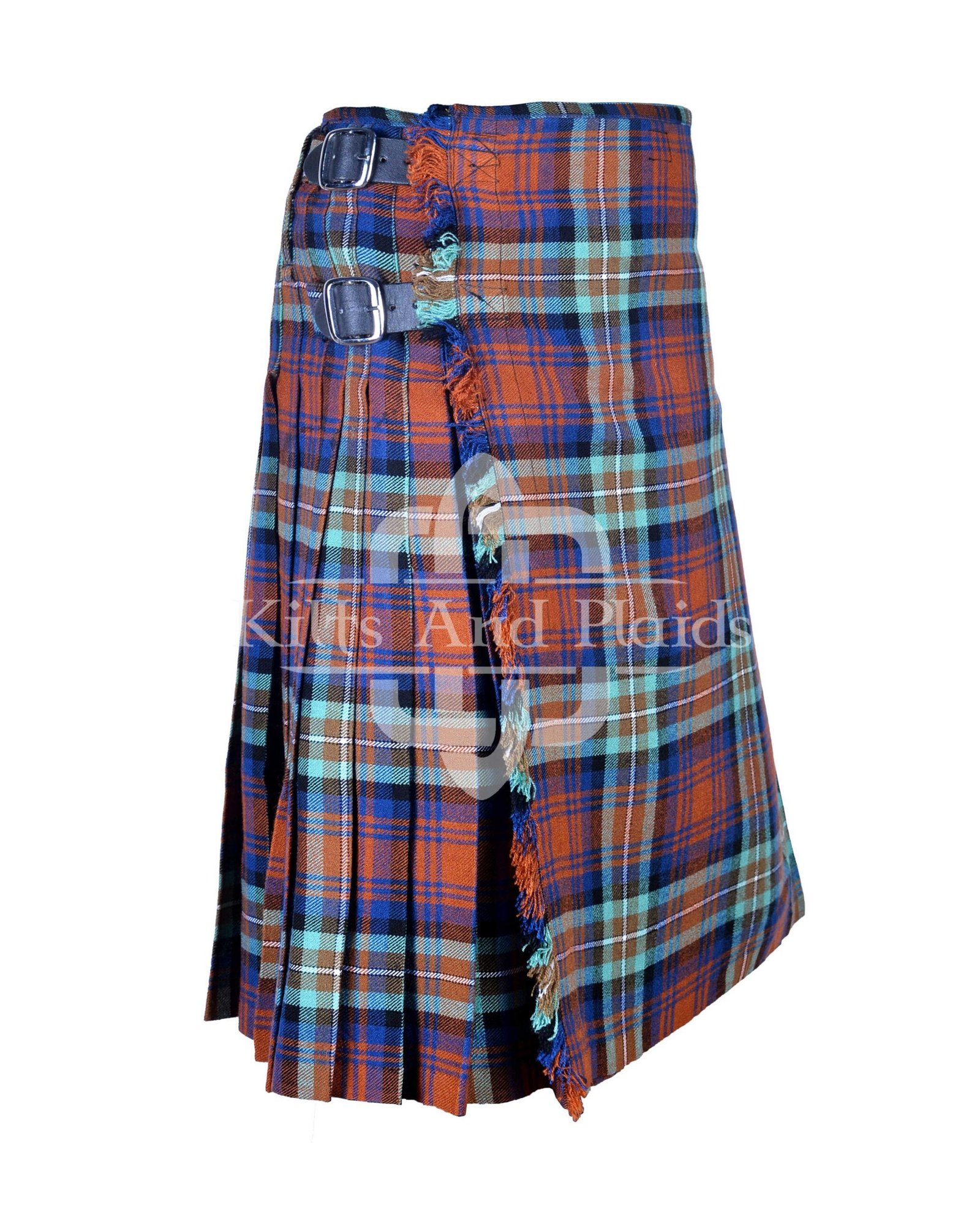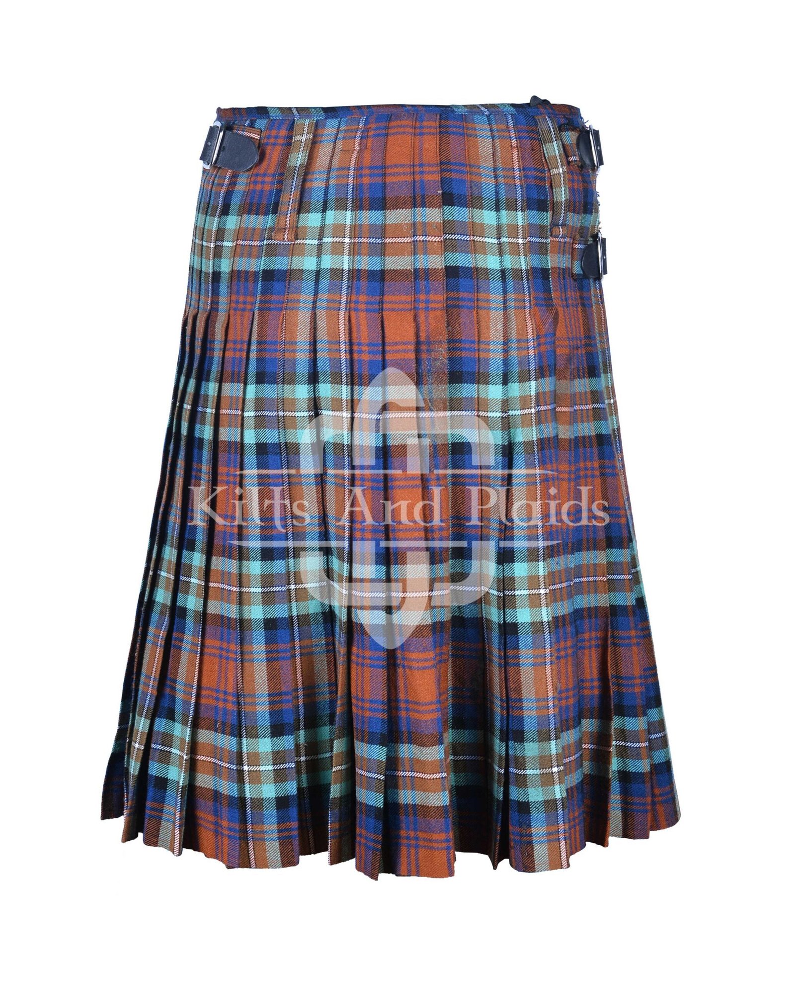 This 8-yard kilt features the distinguished Irn Bru Tartan, a pattern rooted in history and style. Deep earth tones and classic checkered design make it a versatile choice for Highland gatherings, weddings, or everyday wear. Each pleat is hand-stitched with precision, ensuring a clean drape and sharp silhouette that enhances any frame.