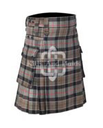 Embrace Highland tradition with the Leslie Weathered Tartan Utility Kilt, a bold combination of Scottish heritage and rugged practicality. We design this kilt using premium acrylic wool and feature the iconic Leslie Weathered Tartan—a blend of soft browns, faded greys, and earthy greens that mirrors Scotland’s natural landscapes.