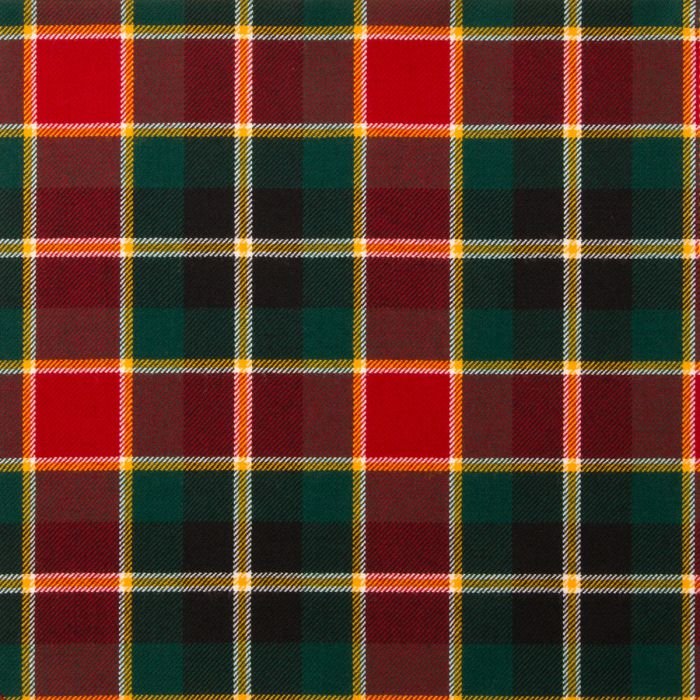 MacLachlan Old Modern Lightweight Tartan is a colorful green-based tartan with bright red and yellow overchecks. Woven using 100% Pure New Acrylic Wool this tartan is available for made to measure products, accessories, soft furnishings and craft projects. Made here in our mill in Selkirk, Scotland.