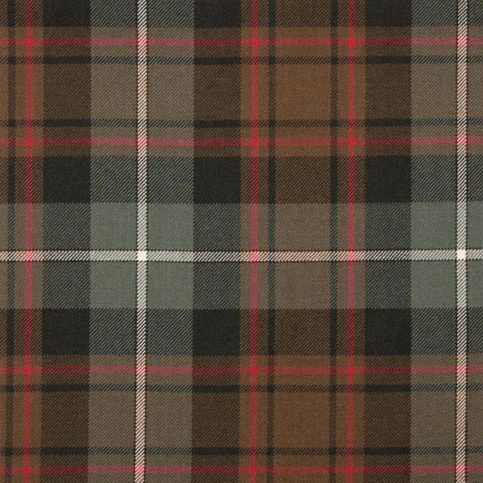MacRae Weathered Hunting Medium Weight Tartan is a grey-based tartan with shades of brown and red.