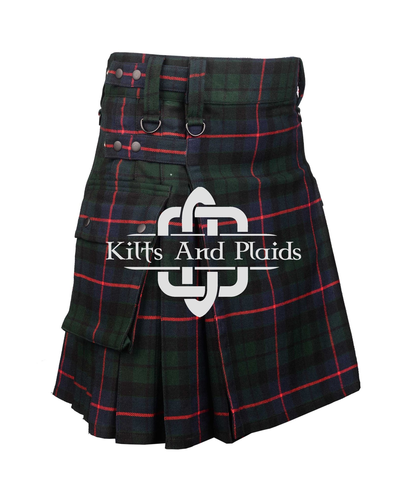 Designed with practicality in mind, the utility kilt features deep, spacious pockets for storing your essentials like phone, wallet, keys, and other personal items. The pockets integrate seamlessly into the kilt’s design, offering modern functionality without sacrificing the traditional tartan aesthetic. The sturdy metal hardware, including buckles and straps, adds both durability and a contemporary edge to the kilt’s overall appearance.