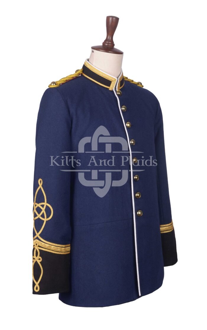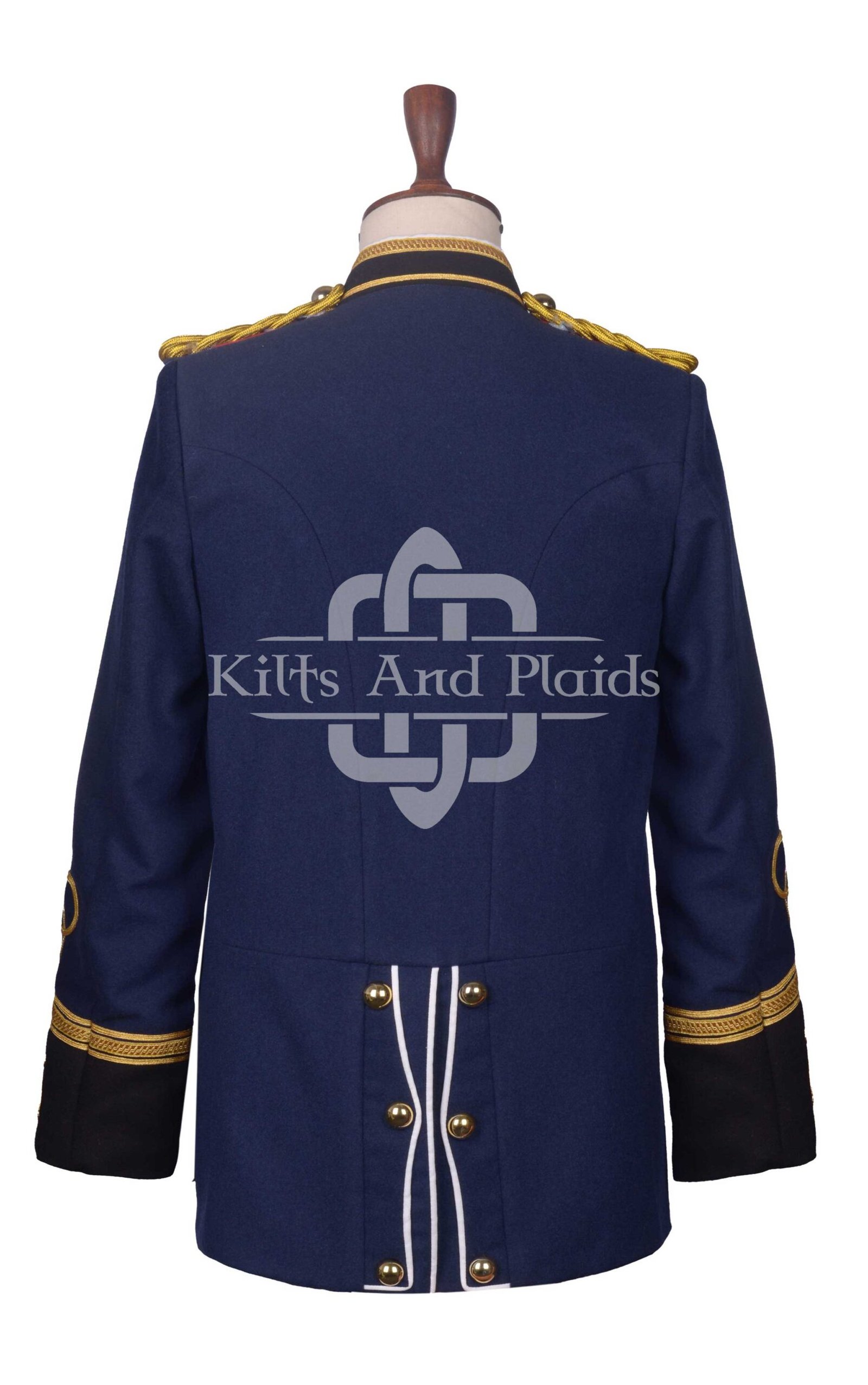 Navy Wool Military Officer Tunic Renaissance Jacket this Designed for performers, history enthusiasts, and lovers of bold statement wear, this jacket bridges the gap between costume and fashion. Available in a range of sizes, with custom sizing available upon request, it delivers a perfect fit with noble flair.