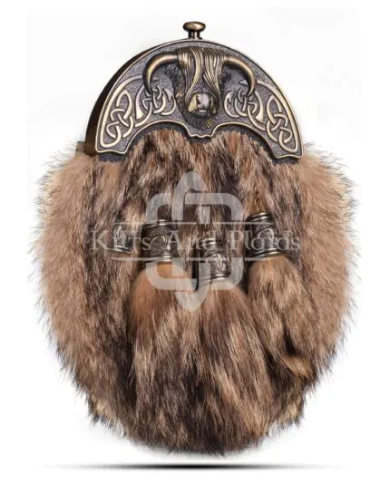 Classic Tassels: Three coyote fur tassels hang from braided leather cords, adding movement and Highland style.