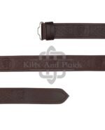 Designed to fit a wide range of waist sizes, the belt is adjustable, ensuring a secure and comfortable fit for most kilt wearers. The deep brown leather color complements a variety of tartans and kilt styles, providing versatility while adding a bold visual impact.