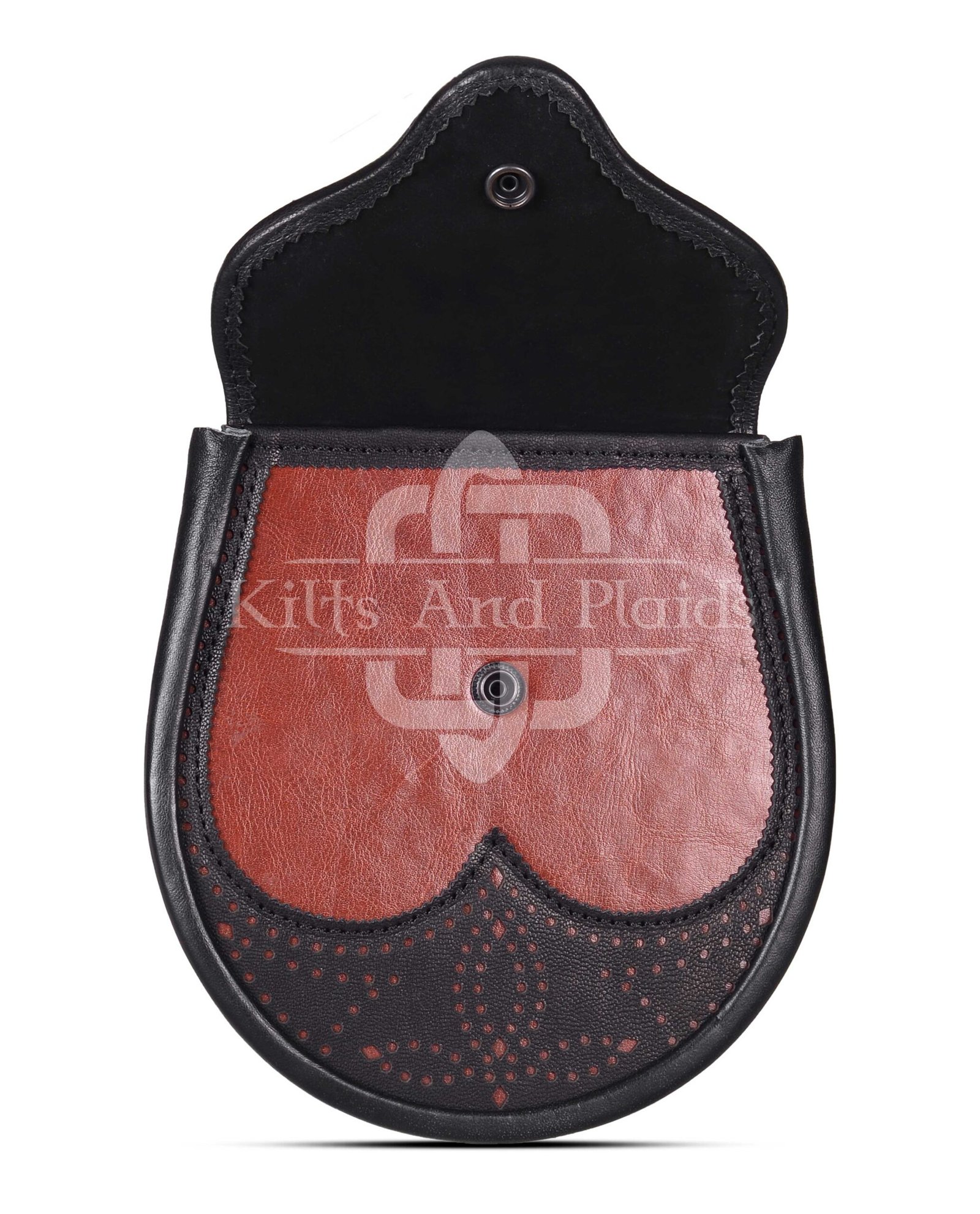 It’s built for daily use with a secure snap-button closure that keeps your items safe yet easily accessible. The roomy interior holds all your essentials—wallet, phone, keys, and more—without adding unnecessary bulk. Its practical design ensures you can enjoy all-day wear without sacrificing comfort or style Red Black Two Tone Day Sporran .