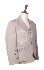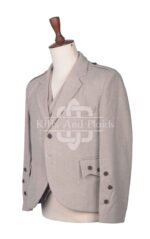 We design this jacket with a traditional Argyll cut that flatters the silhouette and allows ease of movement. The stylish notched lapels, two-button closure, and decorative silver buttons on the cuffs and pockets give it a timeless Scottish appeal. Finished with a single vent at the back, the jacket adds both comfort and structure to your ensemble.