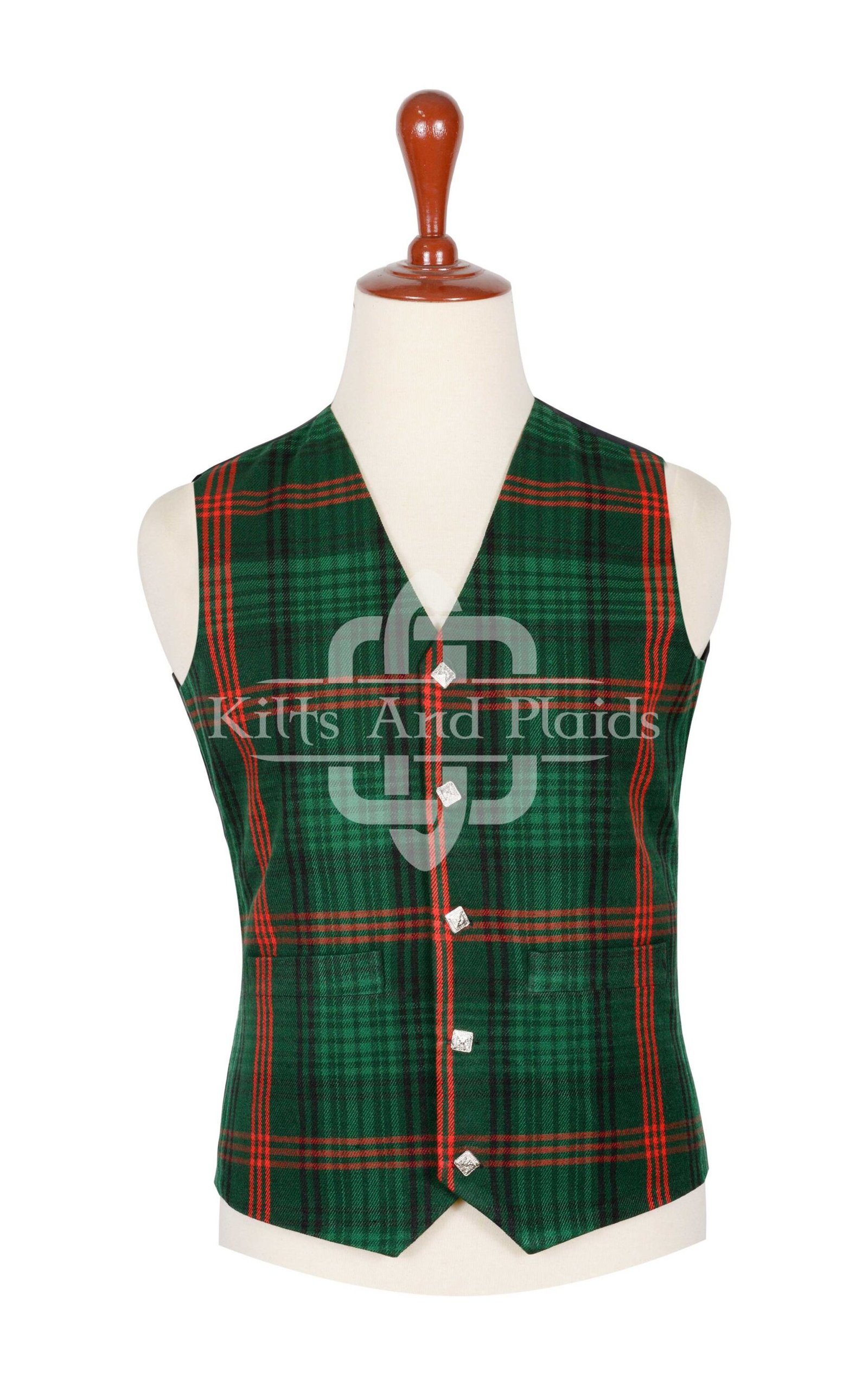The Ross Hunting Modern Tartan Vest blends timeless clan heritage with clean, contemporary style. Its deep green and navy tones, accented by soft red lines, create a classic tartan pattern rooted in Highland tradition. This vest adds a refined edge to formal events, cultural celebrations, or everyday looks.