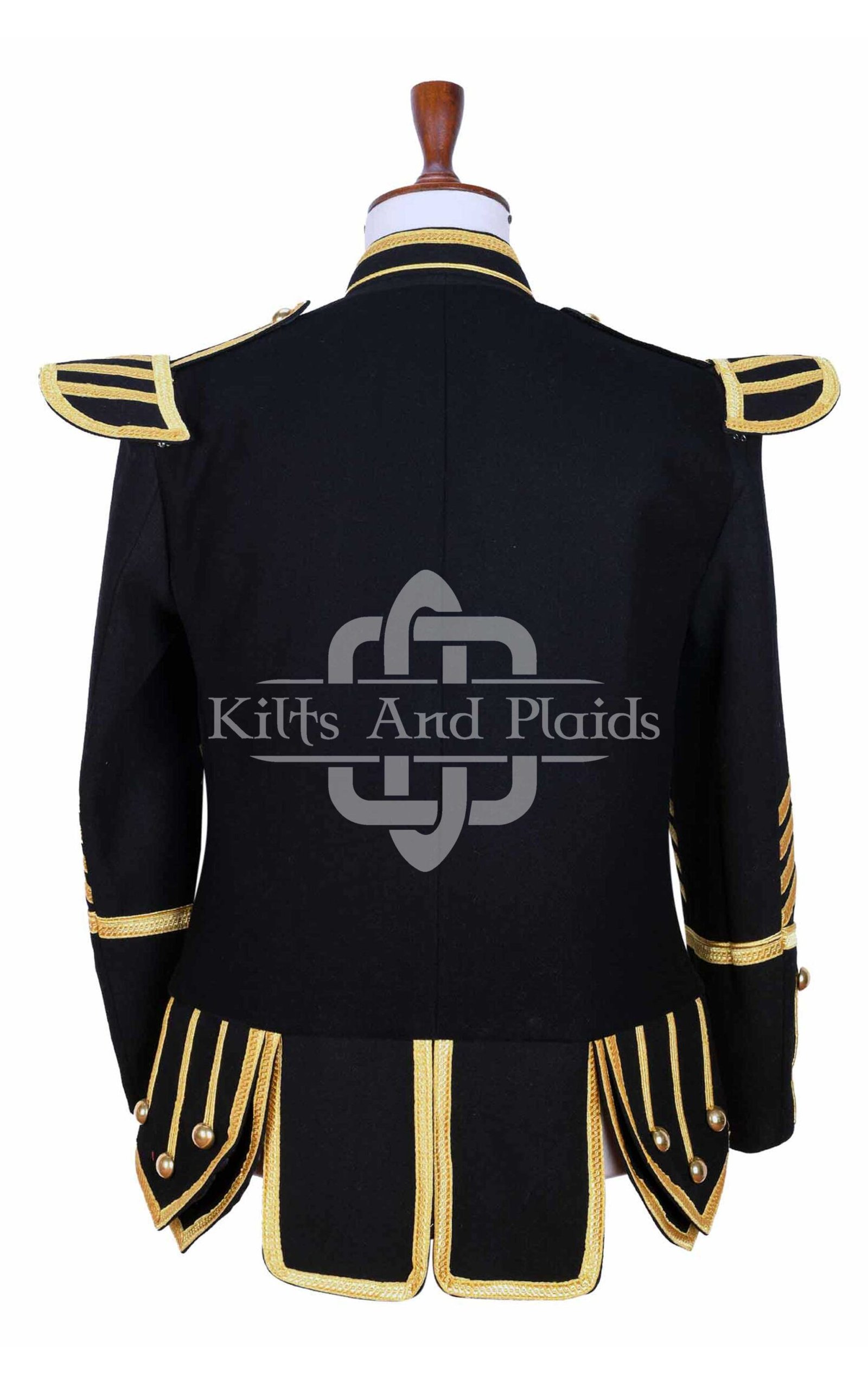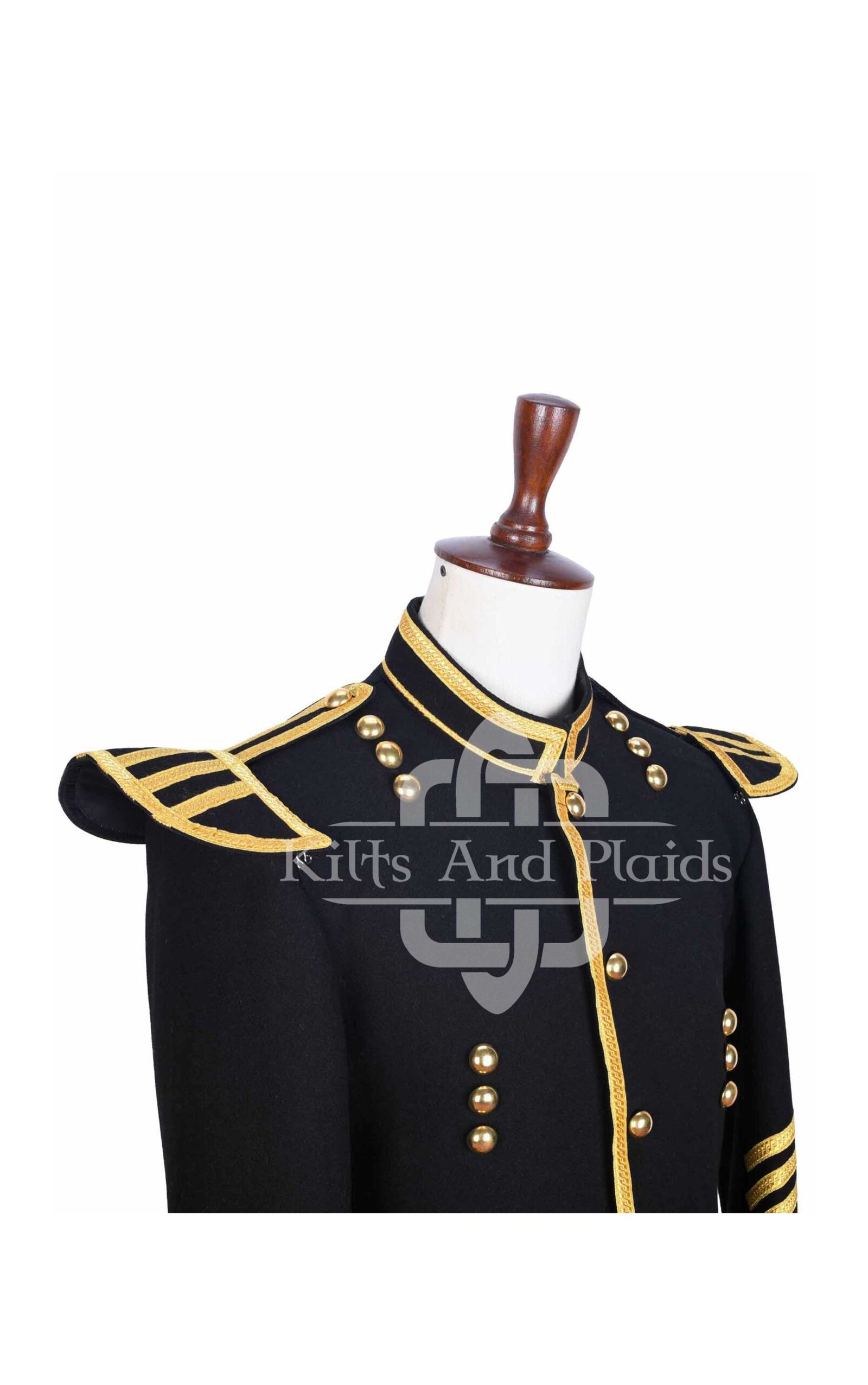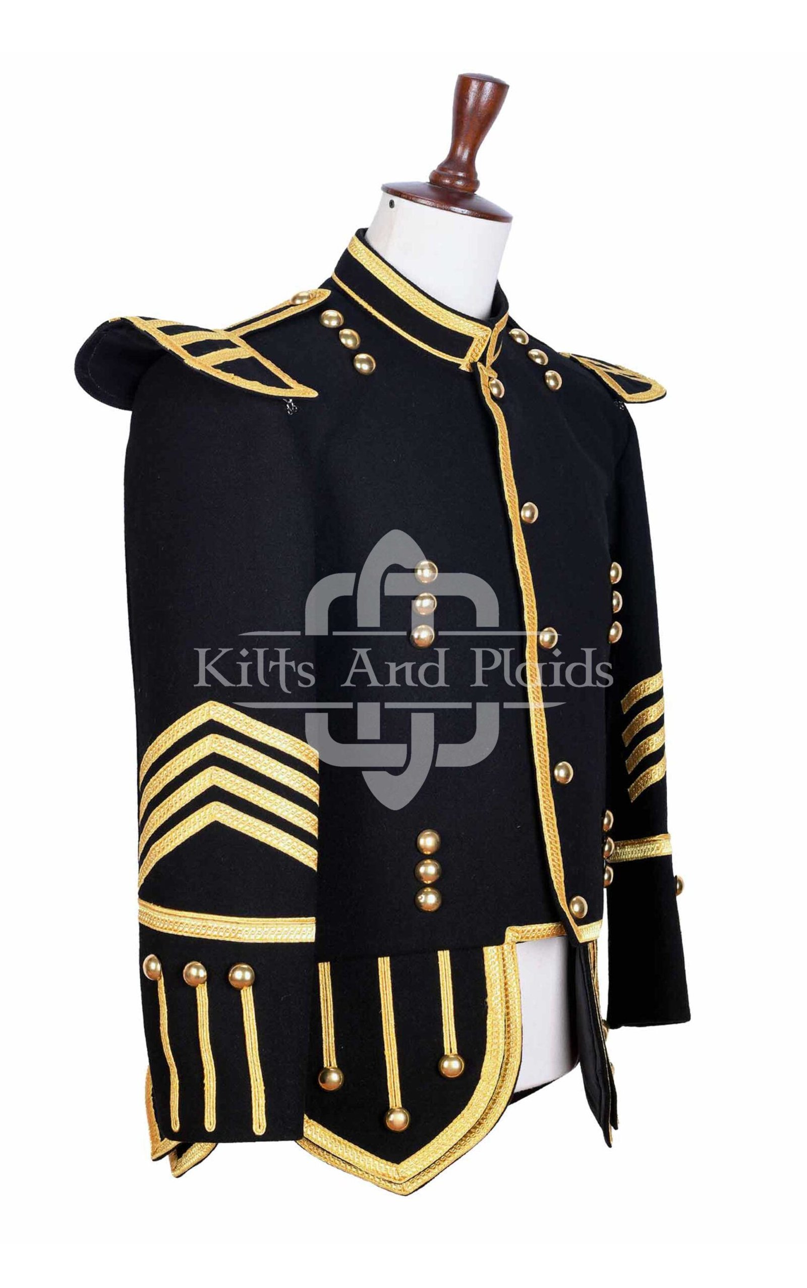 Command attention with our Scottish Black & Gold Military Doublet Jacket, a striking fusion of Highland tradition and military elegance. Crafted with precision and passion, this doublet adds bold character to any formal outfit, pipe band performance, or ceremonial event.