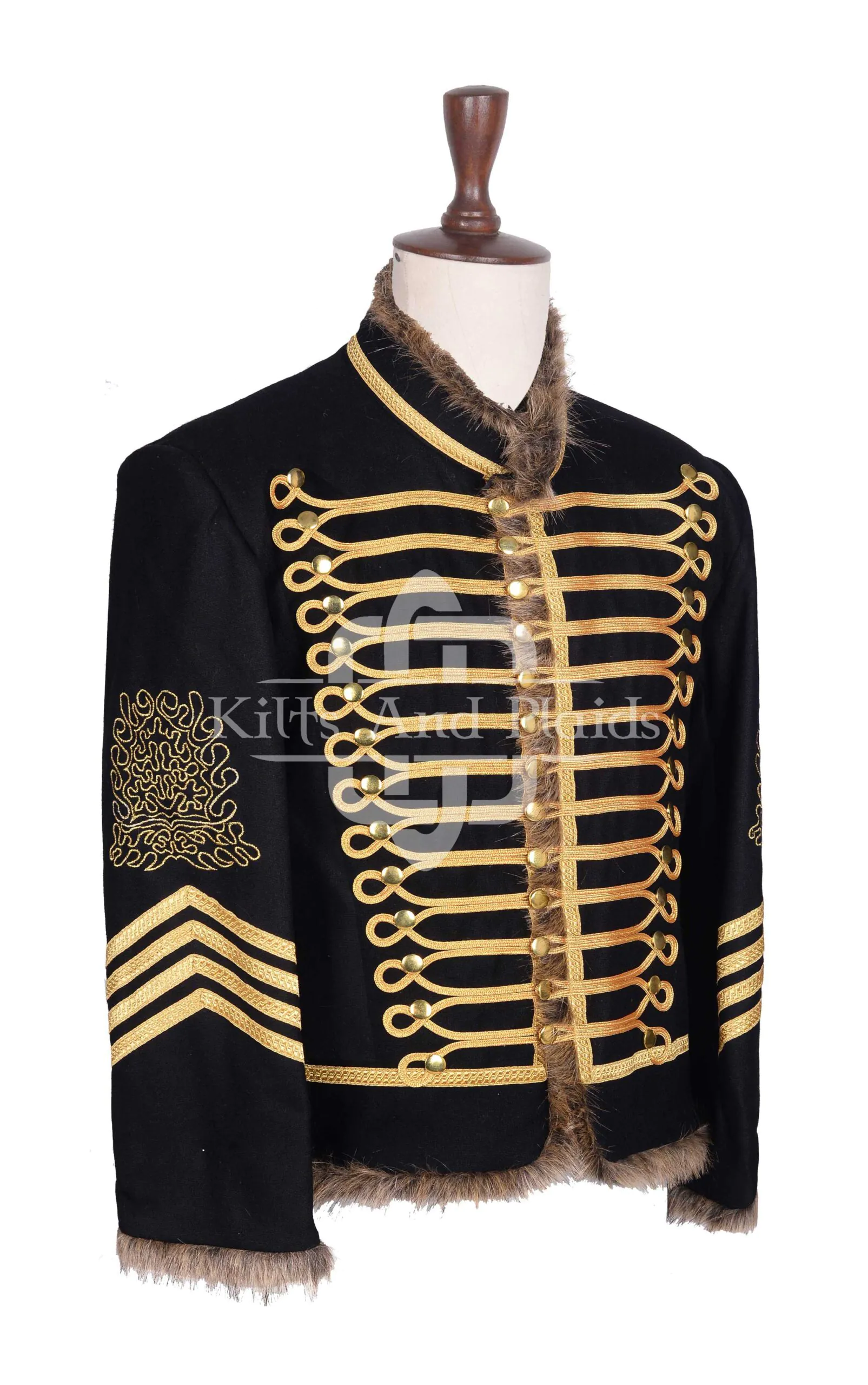 Perfect for Highland events, pipe band majors, reenactments, themed weddings, or stage performances, this Scottish Black Wool Gold Braided Military Hussar Jacket pairs seamlessly with kilts or military trousers for a complete ensemble. It’s not just clothing—it’s a statement of pride, presence, and power.