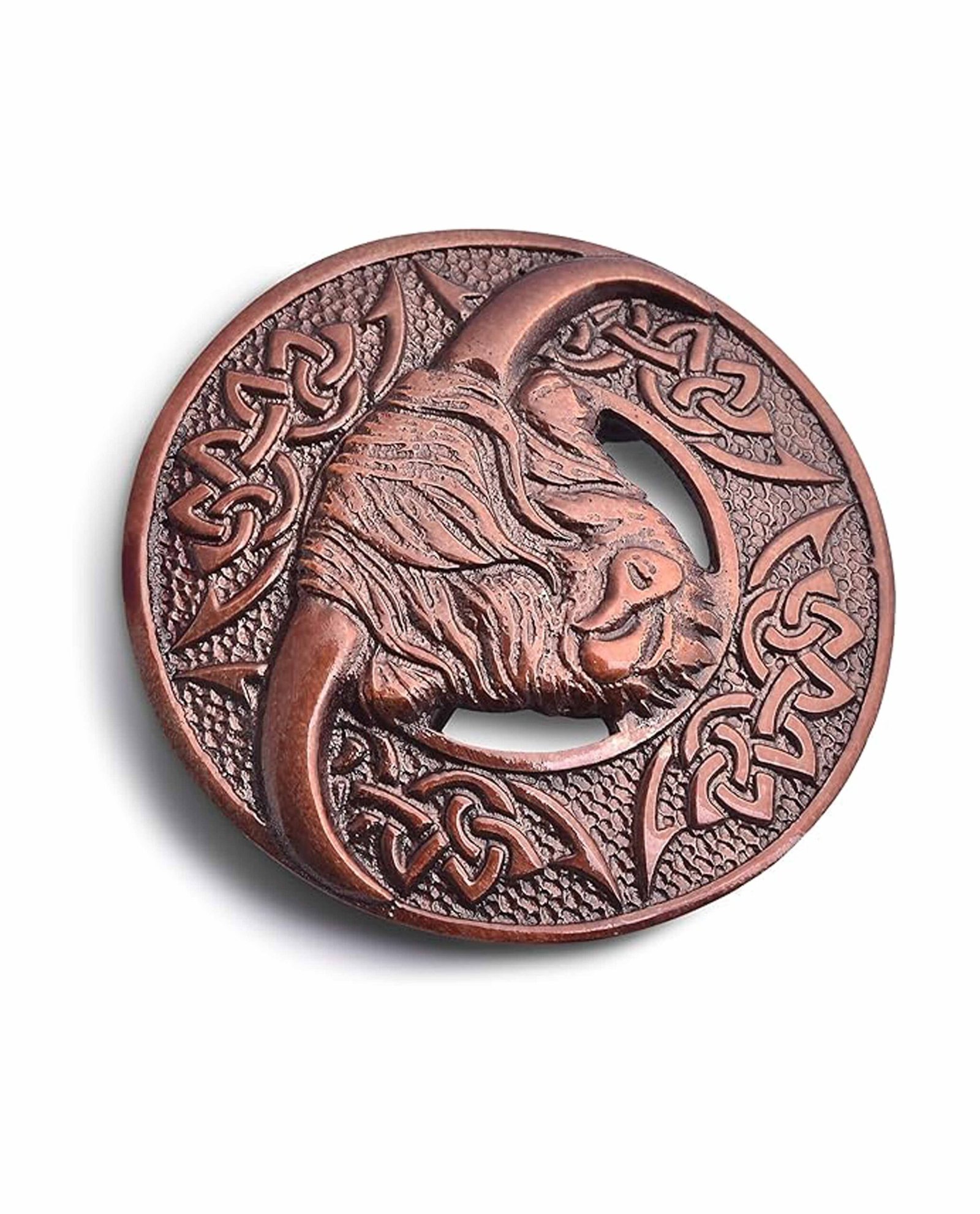 Rustic bronze finish complements traditional Highland attire